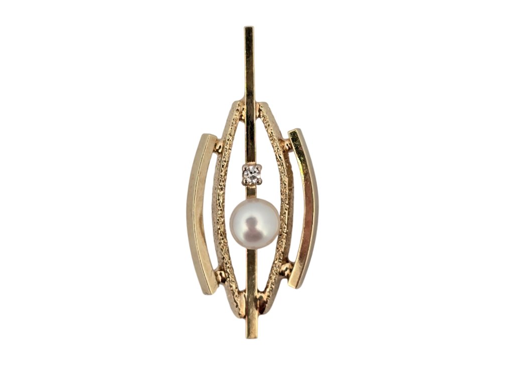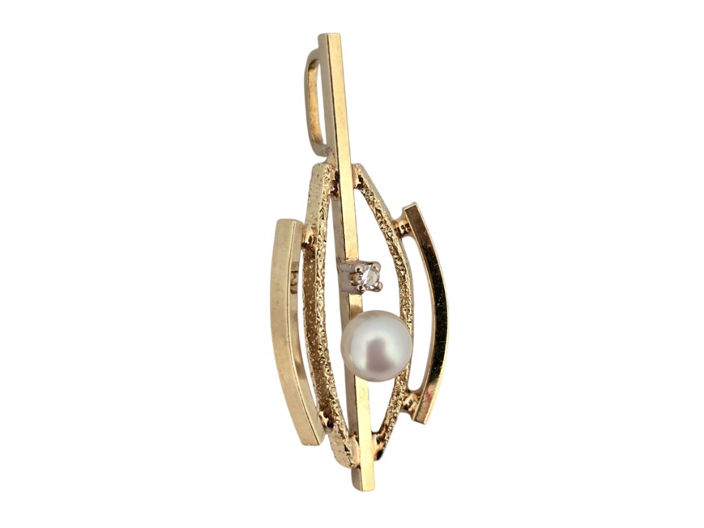Popis: Designový starožitný zlatý přívěsek art deco s diamantem a perličkou. Diamant je přírodní, kulatého jednoduchého brusu, velmi dobré kvality, o váze cca 0,015 ct.