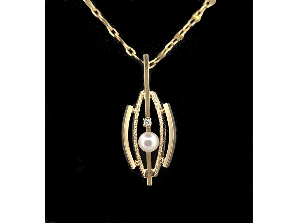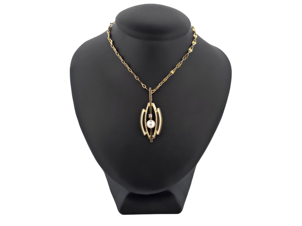 Designový zlatý Art Deco přívěsek s diamantem a perlou