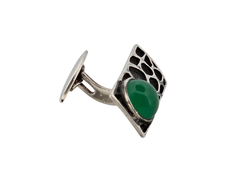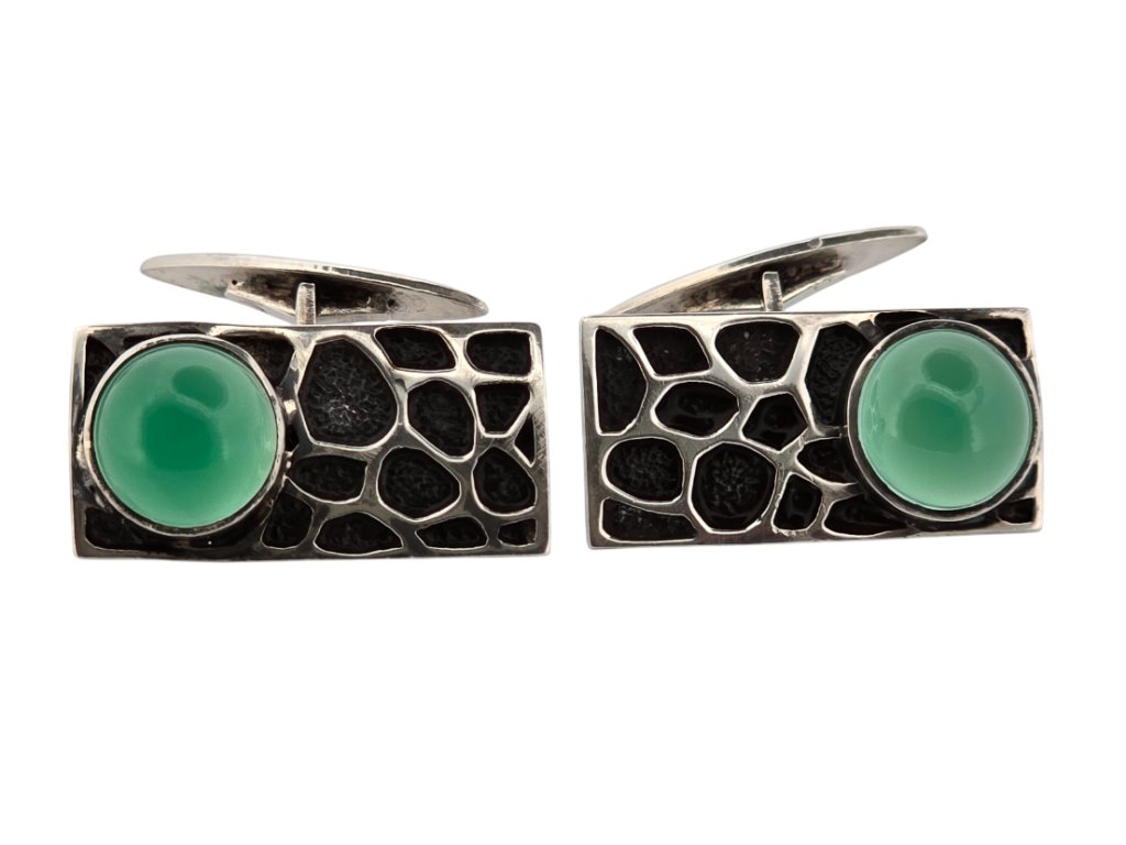 Stříbrné Art Deco manžetové knoflíčky s chryzoprasem