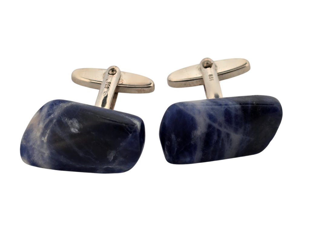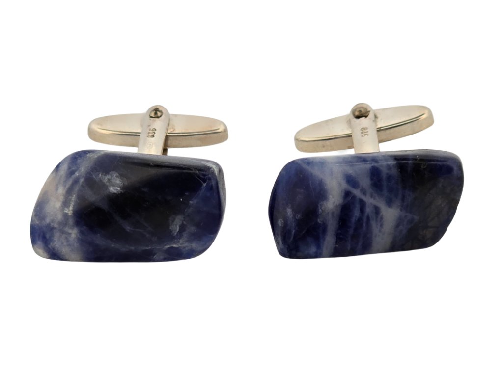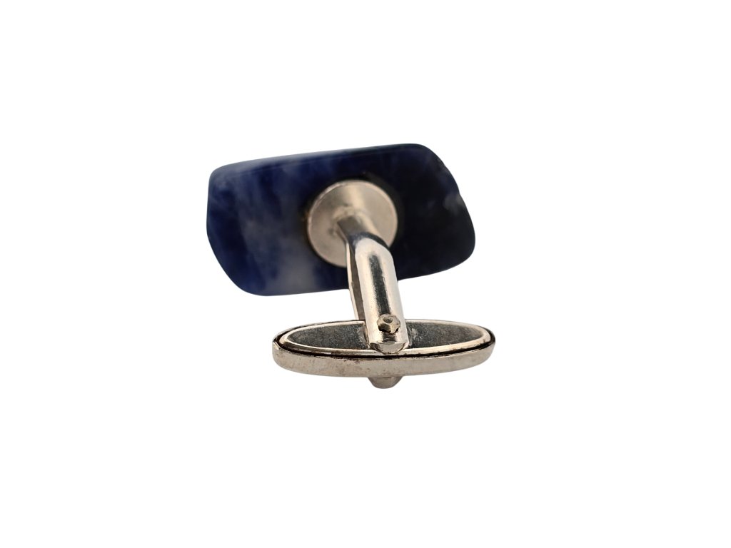 Popis: Stříbrné unikátní manžetové knoflíčky s přírodním modrým žíhaným kamenem lapis lazuli.