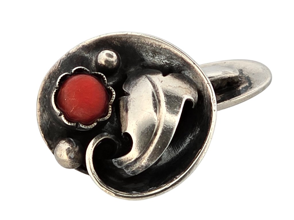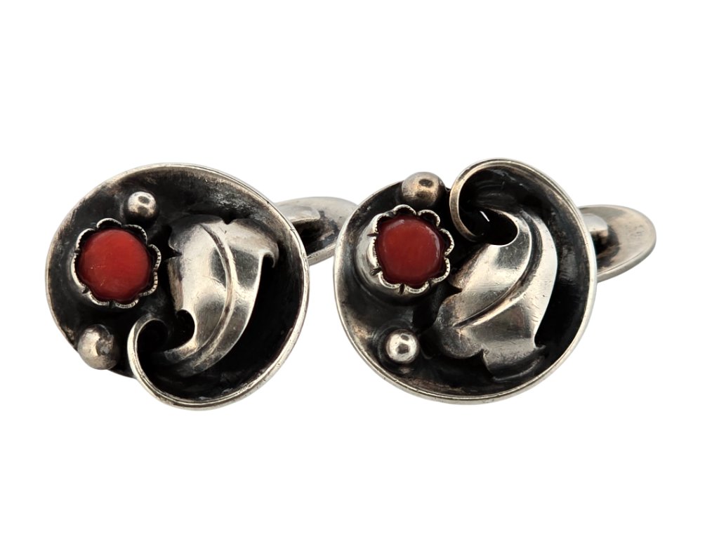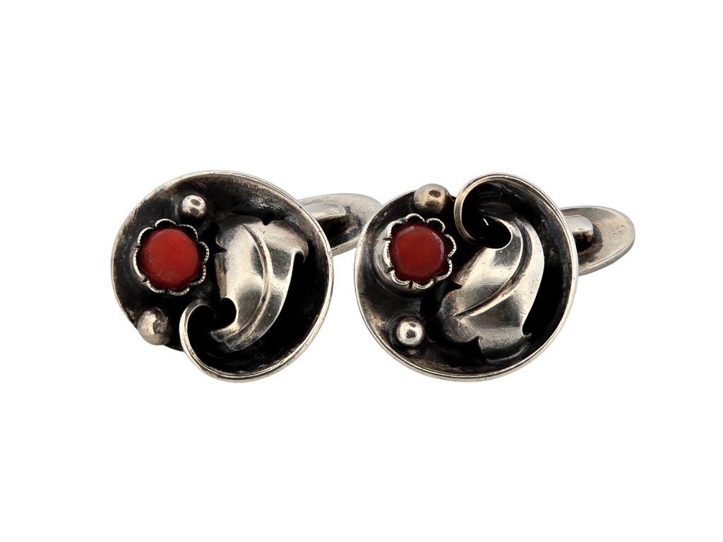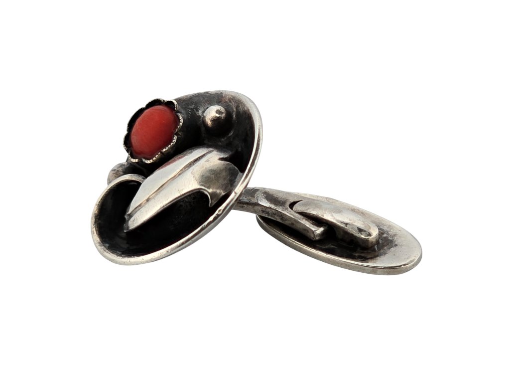 Stříbrné secesní manžetové knoflíčky s přírodním korálem
