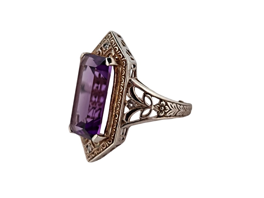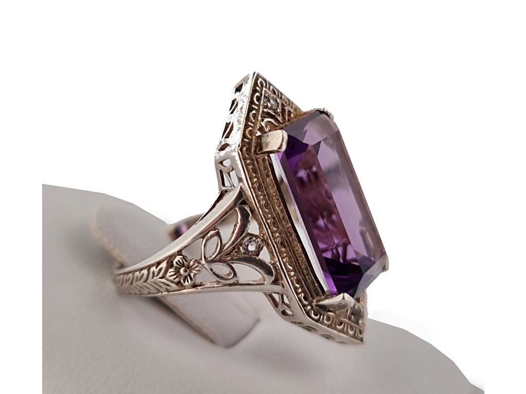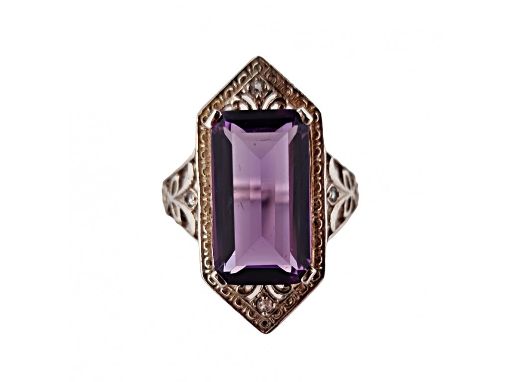 Popis: Stříbrný prsten Art Deco s ametystem a zirkony.