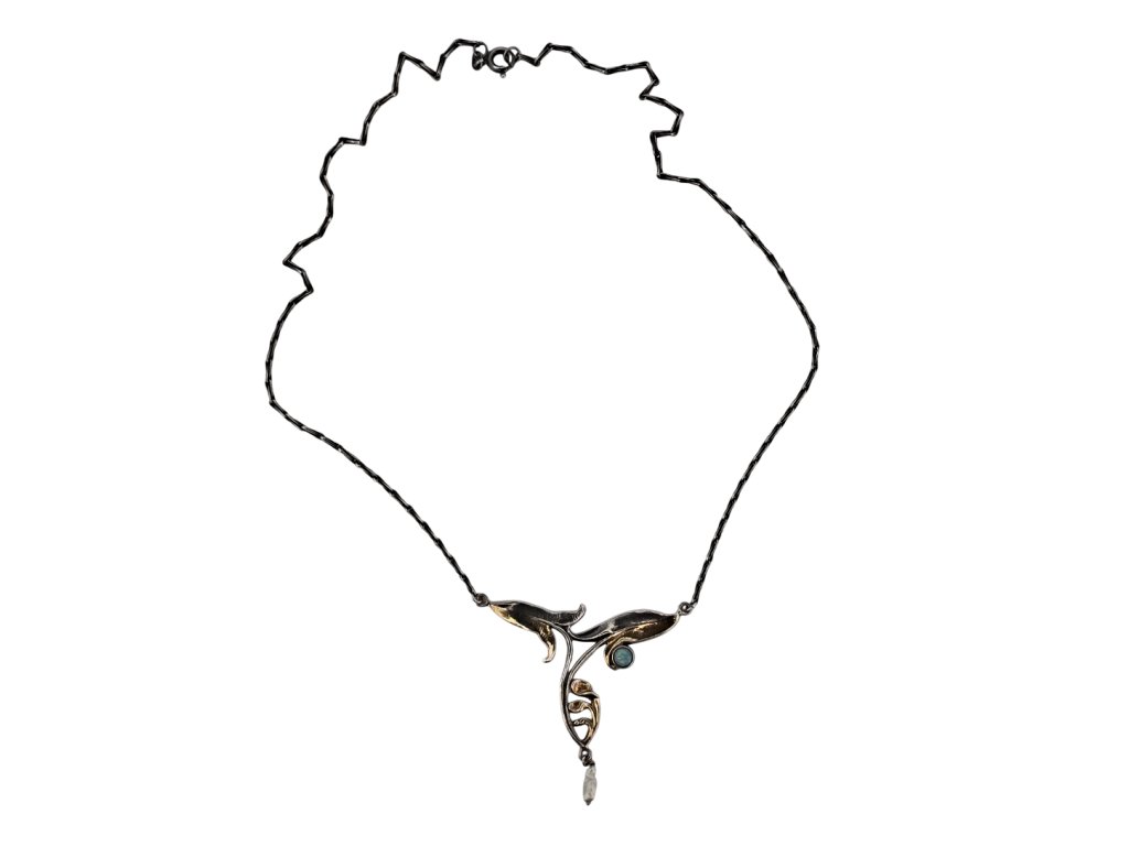 Stříbrný secesní náhrdelník s opálem a perličkou