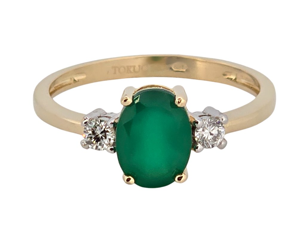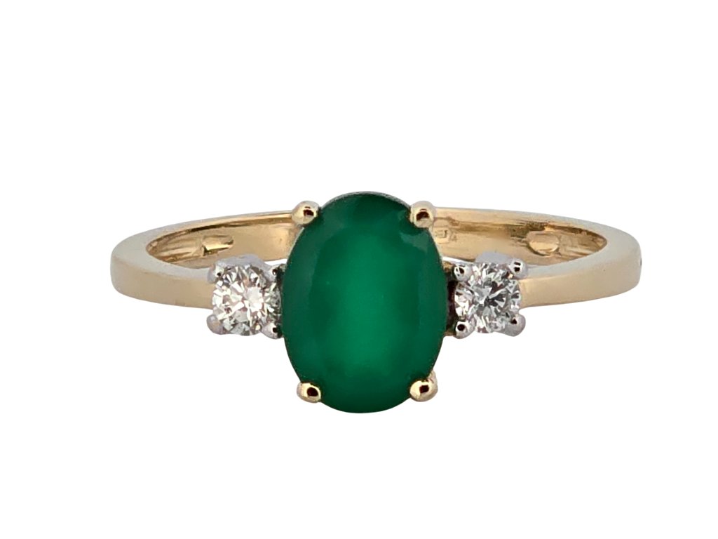Popis: Zlatý prsten s přírodními diamanty a překrásně smaragdově zeleným přírodním chryzoprasem. Chryzopras je dobré kvality o celkové váze cca 1 ct. Dva kusy přírodních diamantů mají briliantový brus, jsou velmi dobré kvality a mají celkovou váhu cca 0,13 ct. Elegantní šperk vhodný pro každou příležitost.